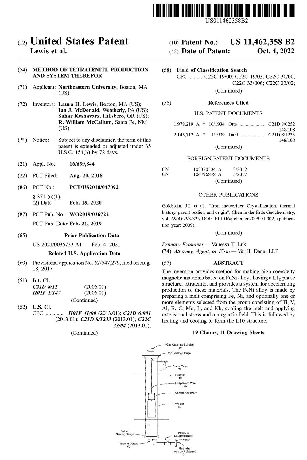 Engineers at Northeastern now believe they can solve the puzzle, and have patented a process to accelerate the creation of one such rare earth magnet alternative—a mineral known as tetrataenite, whose magnetic properties make it a leading candidate to replace magnets made of the scarce material.