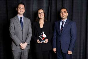 Lewis receiving the Galante Student Leadership & Service Award, presented to a Fellow who stands as an example of an inspirational leader, mentor and manager, and who particularly exemplifies a service mindset.