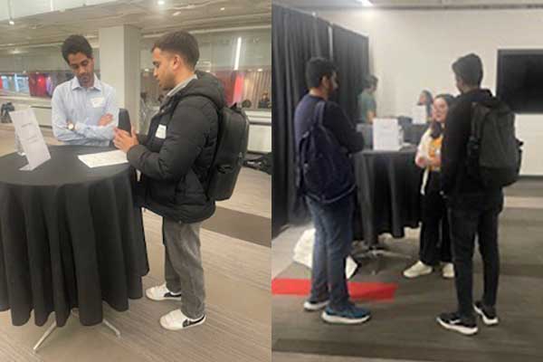 The Department of Mechanical and Industrial Engineering held a Grad Mixer on March 18, 2025, to bring together students who have co-op experience with students just beginning a co-op search. The experienced students enjoyed mentoring co-op seekers and shared valuable insights on how to pursue a work opportunity. Those seeking a co-op said they expect the information and suggestions provided will have a positive impact as they apply for jobs.