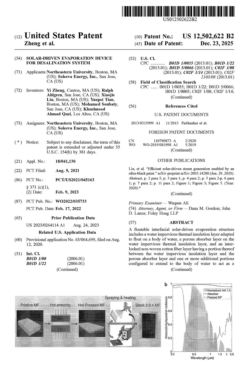 Patent for a Solar Driven Evaporation Device for Water Desalination