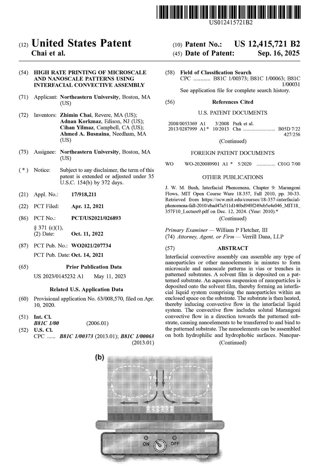 University Distinguished and MIE William Lincoln Smith Professor Ahmed Busnaina was awarded a patent for “High rate printing of microscale and nanoscale patterns using interfacial convective assembly.”
