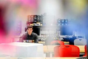 This article originally appeared on Northeastern Global News. It was published by Erin Kayata. Main photo: Students work in the Michael J. and Ann Sherman Center for Engineering Entrepreneurship which offers co-ops for student entrepreneurs. Photo by Matthew Modoono/Northeastern University